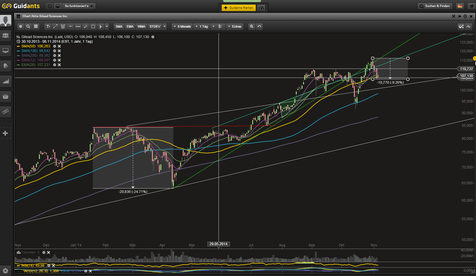 Ich glaube, es geht hier vielen so wie mir, daher hätten wir schon gerne gewusst, wieso Gilead seit Tagen gegen den Trend schlechter läuft, bzw. deutlich schlechter, als der Gesamtmarkt.