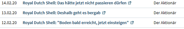 Außerdem ändert Shell sein Geschäftsmodell sukzessive. Man ist nicht mehr nur von Öl und seinen Produkten abhängig, sondern investiert auch in erneuerbare Energie bzw. nachhaltig.