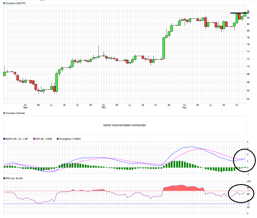 Zum einen markiert die Aktie ein neues ATH heute und zum anderen liefert der MACD ein erstes kleines Kaufsignal (siehe Kreis).