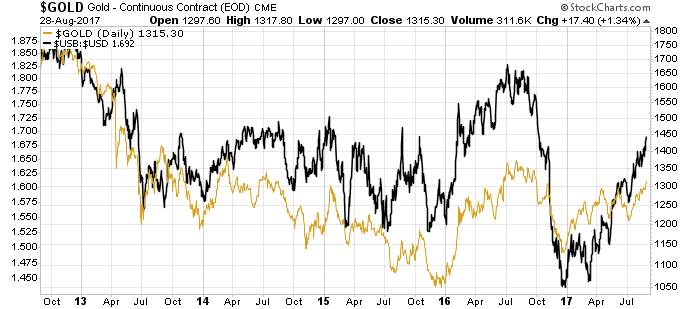 Läuft USB/USD nach oben so tut das in der Regel auch das Gold und umgekehrt.