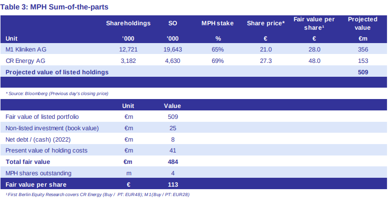 . . . und das MPH-kursziel von 81 € auf 113 € erhöht: https://www.more-ir.de/d/30021.pdf; den NAV je MPH-Aktie 2024e schätzt er auf 65,2 €