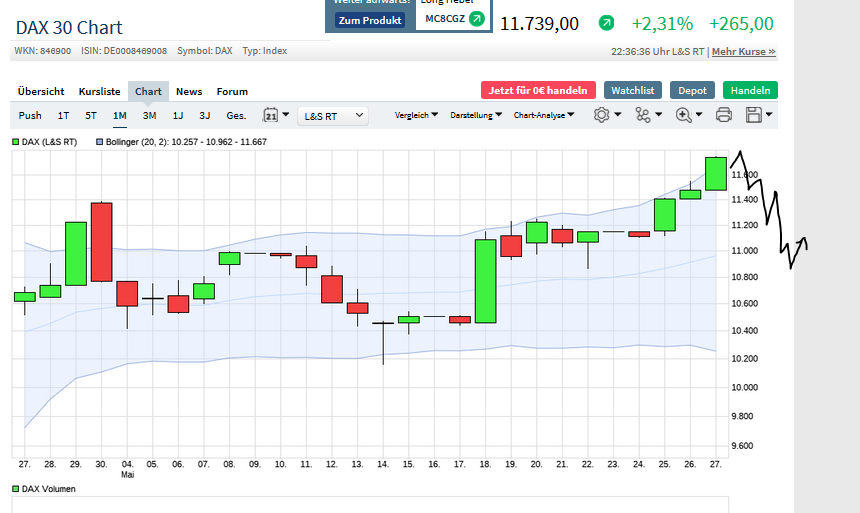 Dax spätestens morgen bei 12k und DOW mind. 26.500 bis nächsten Mittwoch :)