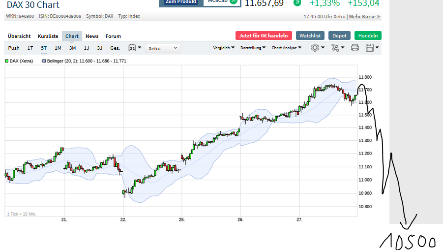 Kann es sein dass bei dir nun eine gehörige Portion Emotionen im Short trade dabei sind? Bin selbst Short dax 11650, Tp wäre 11300 im optimalfall ~ 10870 aber daran mag ich nicht wirklich glauben bei den Kerzen die "die" da reinhämmern