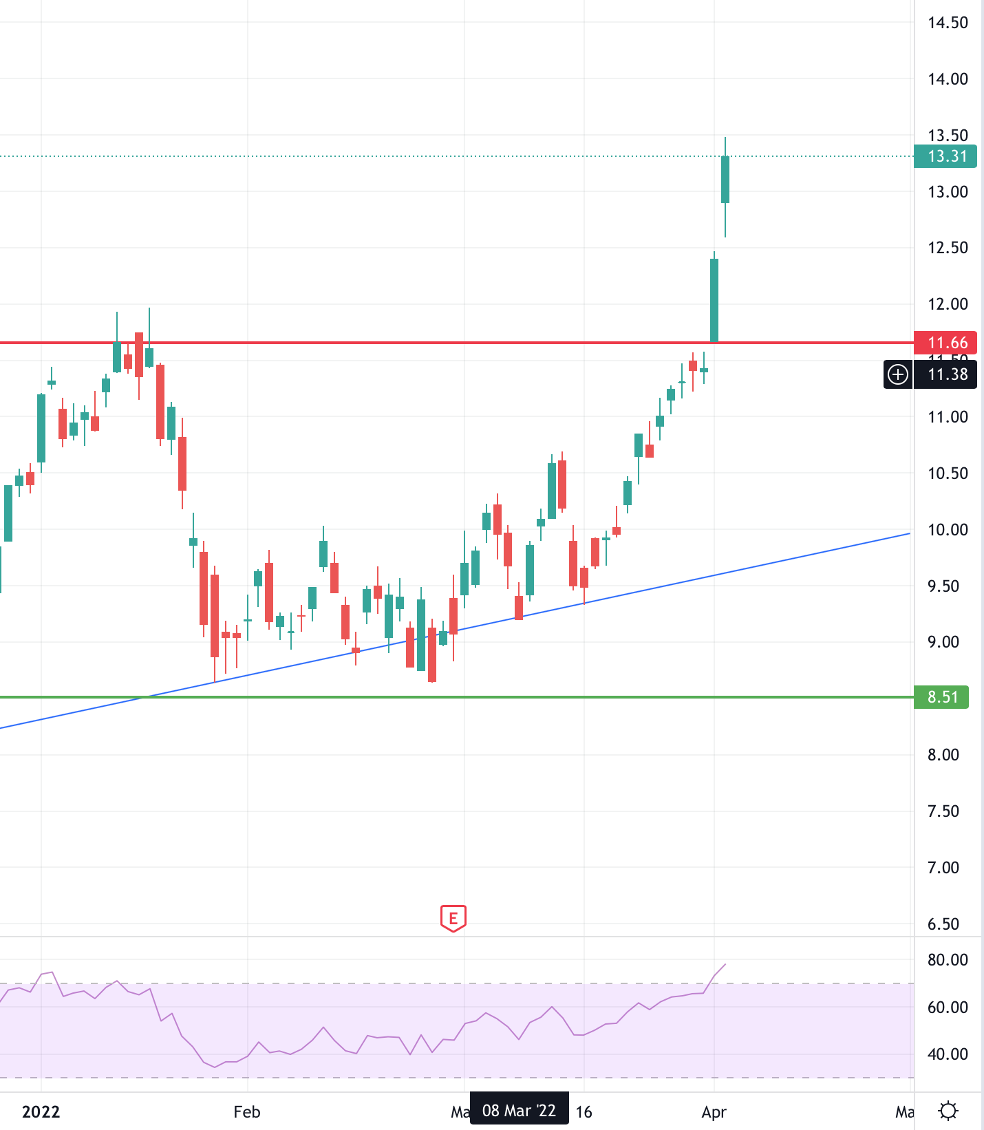 Die Jungs in Down Under geben schon wieder Gas, aktueller Kurs 13,45 AUD (+8,47%)