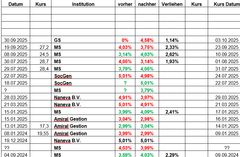 Mittlerweile halten die Societe General, Morgan Stanley und Goldman Sachs zusammen fast 15%.