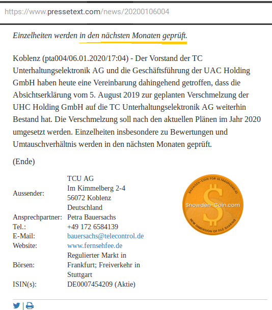 bedeutend wäre es m.E. ja nur, wenn Jemand der UAC nahe Stehender Aktien der TCU