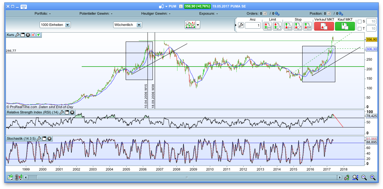 Der letzte Spike dieser Art war 2006 und da nahm die damalige Hausse auch noch mal Fahrt auf, weshalb die Kursentwicklungen durchaus auch heute divergieren können.