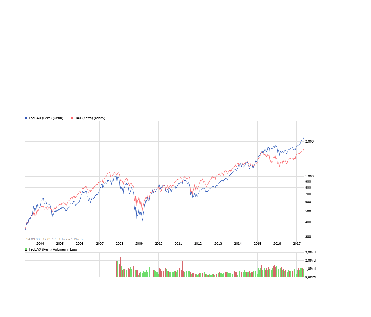 Ist der Tec wirklich ein Index ? Sehr wenige Aktien bestimmen mit ihrem Volumen die Tendenz. Vielleicht sinnvoller, diese Aktien in ihrer Relativität zu untersuchen.