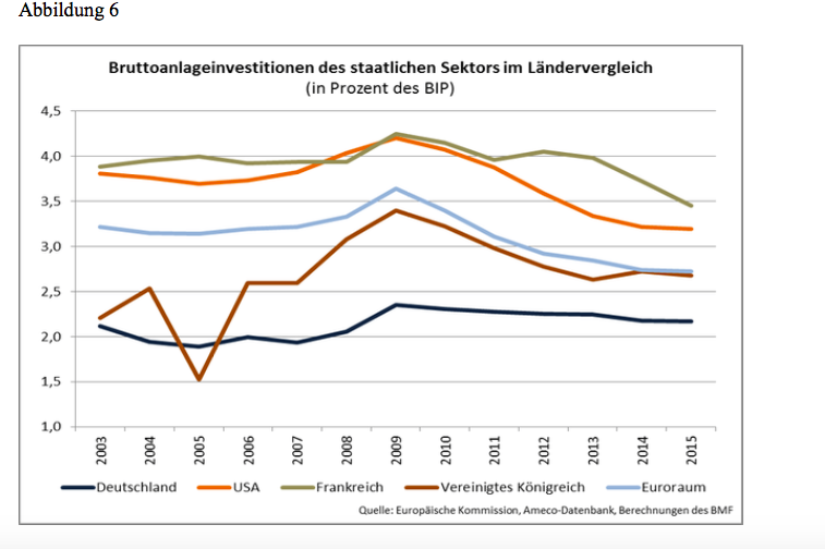 ...was wir aber wissen, ist folgendes: Das Statistische Bundesamt (Destatis) weist mittlerweile eine Investitionslücke von 83 Milliarden Euro in der öffentlichen Infrastruktur aus. Diese Summe, seit 2003 in Deutschland aufgelaufen, hätten Bund, Länder und vor allem die Gemeinden allein für den Werterhalt der Infrastruktur wie öffentliche Gebäude und Straßen ausgeben müssen. Zählt man alle „Nettoanlageinvestitionen in Nichtwohnbauten der öffentlichen Hand” – so die offizielle Destatis-Bezeichnung – seit der Einheit zusammen, kommen wir auf einen Negativsaldo von 27 Milliarden Euro. Wir haben uns den Einheitsboom durch Verschleiss praktisch komplett weggespart...