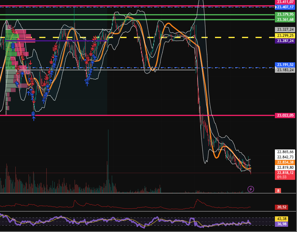 DAXiene....Trend down....kleines Longsignal schwächer....SignalN Long....236 abgeräumt....421 knapp verfehlt....663 nächste Stütze unten....oben bremst 23k