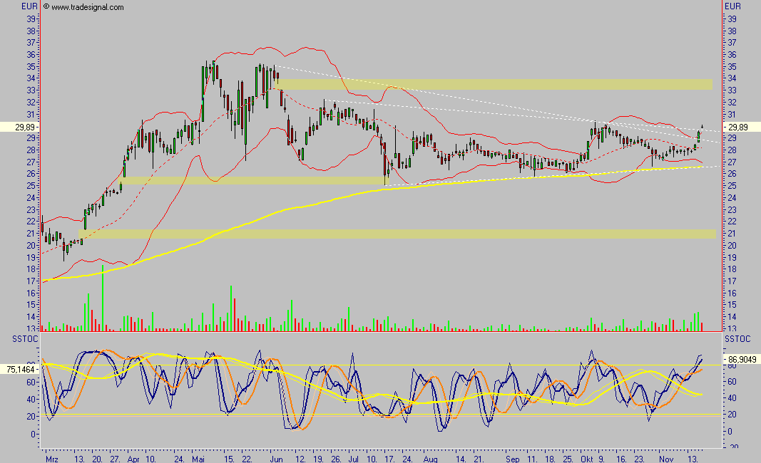 Insgesamt betrachtet würden die Zeichen somit nach wie vor auf Wachstum stehen. Dies habe sich lange Zeit auch im Aktienkurs widergespiegelt. Zu Jahresbeginn sei eine Rally gestartet, und der Kurs habe sich bis Mai mehr als verdoppeln können. Es sei jedoch eine größere Korrektur gefolgt. Vom bisherigen Jahreshoch bei 48,41 Euro sei es bis zum Zwischentief im September fast 30 Prozent abwärts gegangen. Seither habe sich der Kurs wieder erholt. Angesichts der fundamental sehr guten Lage sowie der günstigen Bewertung sei weiteres Potenzial gegeben. Auf dem aktuellen Niveau könnten daher Käufe in Erwägung gezogen werden. Das bisherige Hoch von mehr als 48 Euro sei dabei als nächstes Kursziel anzusehen. Ein Ausbruch darüber dürfte dann weitere Steigerungen nach sich ziehen.