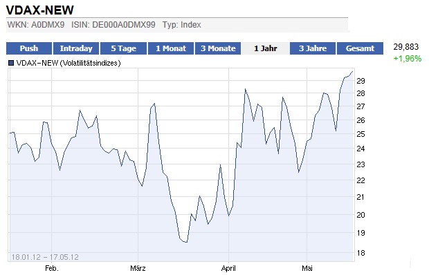 Seit Anfang Mai fiel Dax um 9,4% der Dow aber "nur" um 5,2%.