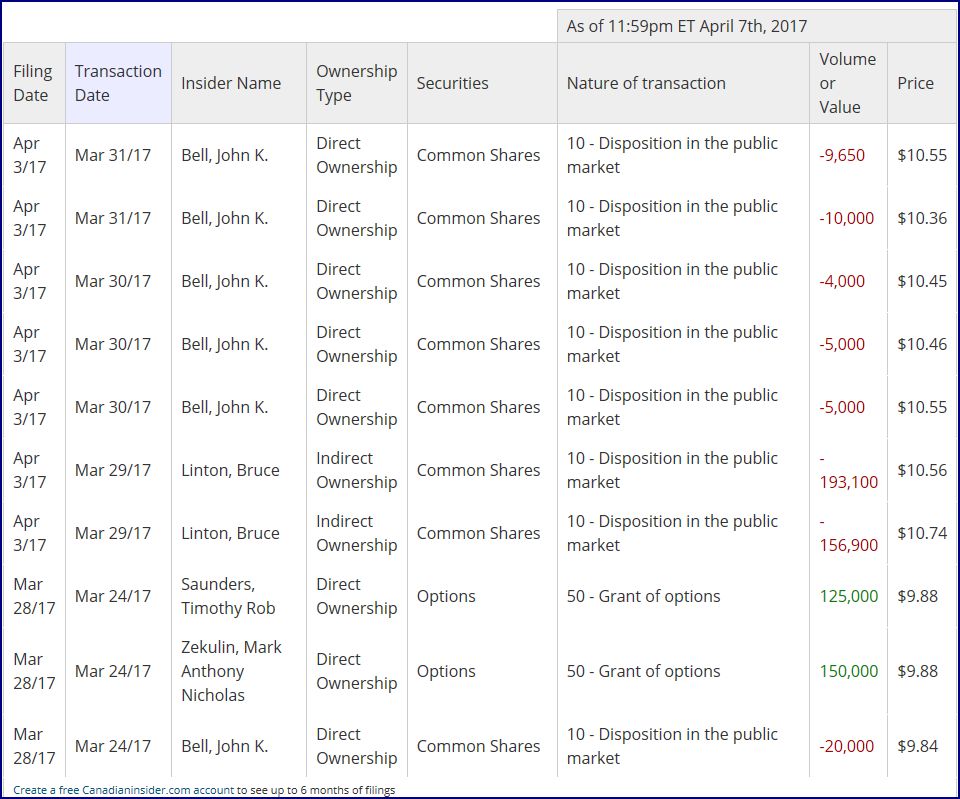 Update 10.05.2017: Das Flaggschiff reisst jede Unterstützung, der Durchbruch durch die 200er EMA beschleunigt den Abverkauf sogar. Der RSI ist nun stark überverkauft und signalisiert eine etwaige baldige kurzfristige Entspannung. Wird selbst der Bereich bei 7,3-7,65 unterschritten wäre das nächste technische Kursziel erst wieder bei ca. 5,5CAD zu suchen. Erst Kurse > 8,8 respektive 9,6 entspannen das angeschlagene Chartbild.