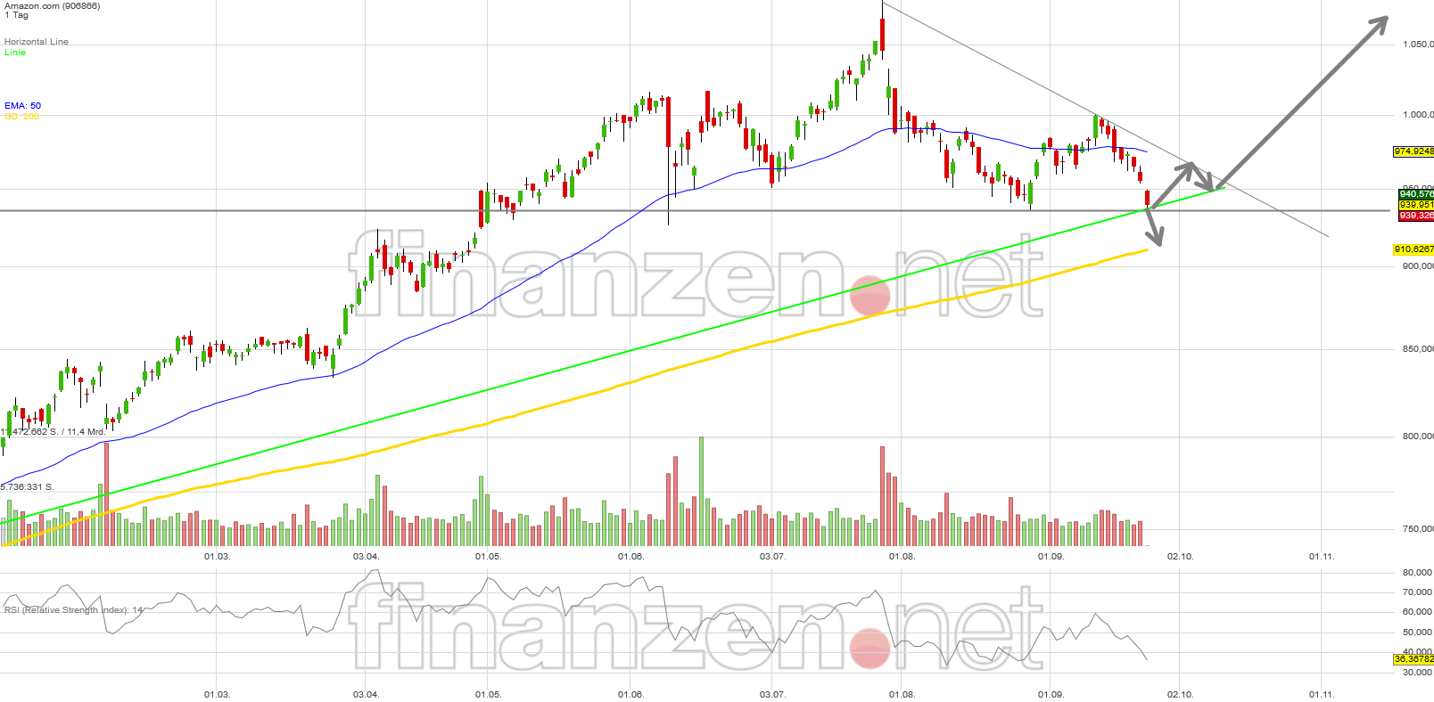hat gerade so gehalten, der Kurs war schon deutlicher darunter, man konnte sie aber in der letzten Handelsstunde wieder zurückerobern. Sollte sich die Korrektur beim Nasdaq fortsetzen, wird sich vermutlich auch Amazon diesem trüben Umfeld nicht entziehen können. Noch besteht die Chance auf einen Doppelboden, der dann mit guten Zahlen in einem neuen Allzeithoch münden könnte. Wenn die Unterstützung fällt, sollte der GD 200 zunächst sicheren Halt geben und ich denke spätestens da sind Einstiegskurse. Die Erwartungshaltung der Anleger an die Zahlen scheint nicht mehr so anspruchsvoll zu sein, daher sind wieder Überraschungen mit größeren Kurssprüngen möglich.