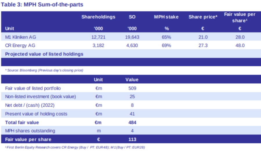 basierend auf dem k u r s w e r t der MPH-Beteiligungen zum 11 Juni 2024 hatte die MPH-Aktie nach rechnung des analysten einen NAV zum 11 Juni 2024 iHv 83 €
