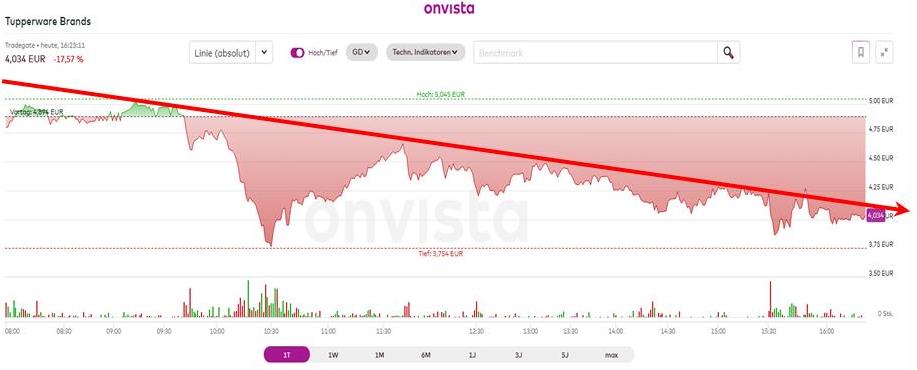 Gestern haben wir ein vollkommen normales und erwartbares Verhalten gesehen, dass jeden Wert irgendwann mal trifft, der so schnell gestiegen ist. Tupper hat mal eben über 30% an Wert verloren. Das liegen zu lassen ist in meinen Augen einfach nur dumm und zeugt von wenig Erfahrung im Umgang mit Aktien. Kommt bei dem Q2/ 2023 ER heraus, dass sie weiterhin Schwierigkeiten haben ihr Unternehmen zu finanzieren, ist der Kurs bald wieder da, wo er vor rund zwei Wochen noch war, nämlich im Penny Bereich. Sollte es positiv weitergehen, kann man immer und jederzeit wieder einsteigen.