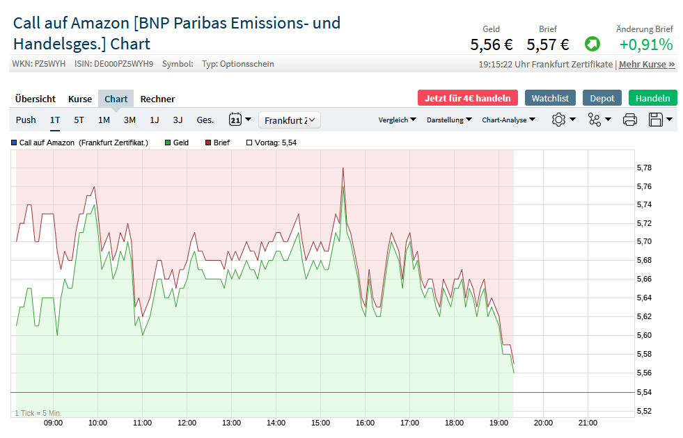 zu AMZN audomadischer Kauf 5,66 -> TP war 5,72