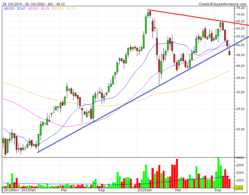 Also charttechnisch sieht das jetzt natürlich erstmal beschissen aus. Aber kann natürlich ein Fehlsignal sein, falls man Freitag bei den Zahlen/Ausblick überzeugt und einen Wochenschluss oberhalb 48 € hinlegt.