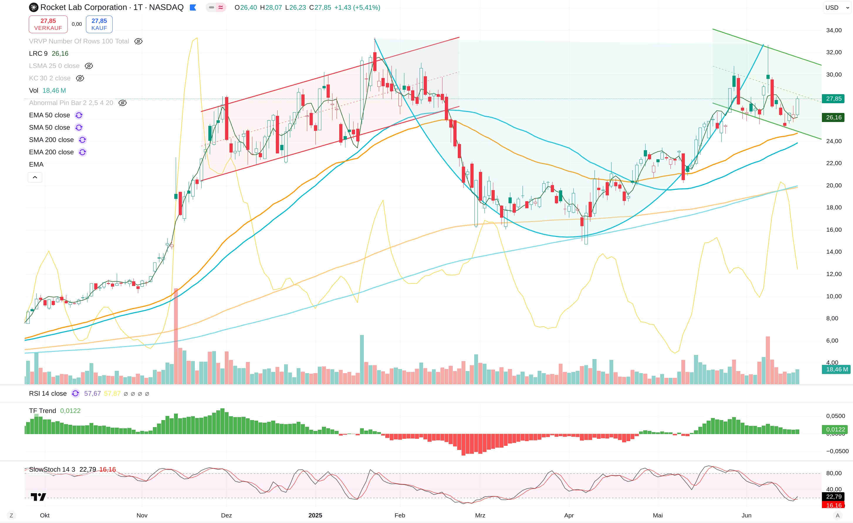 Natürlich muss man stets den Gesamtmarkt und die Trump-Politik im Auge behalten. Bei hoch bewerteten Aktien wie Rocket Lab kann eine Schwäche des Gesamtmarktes zu größeren Rücksetzern führen.