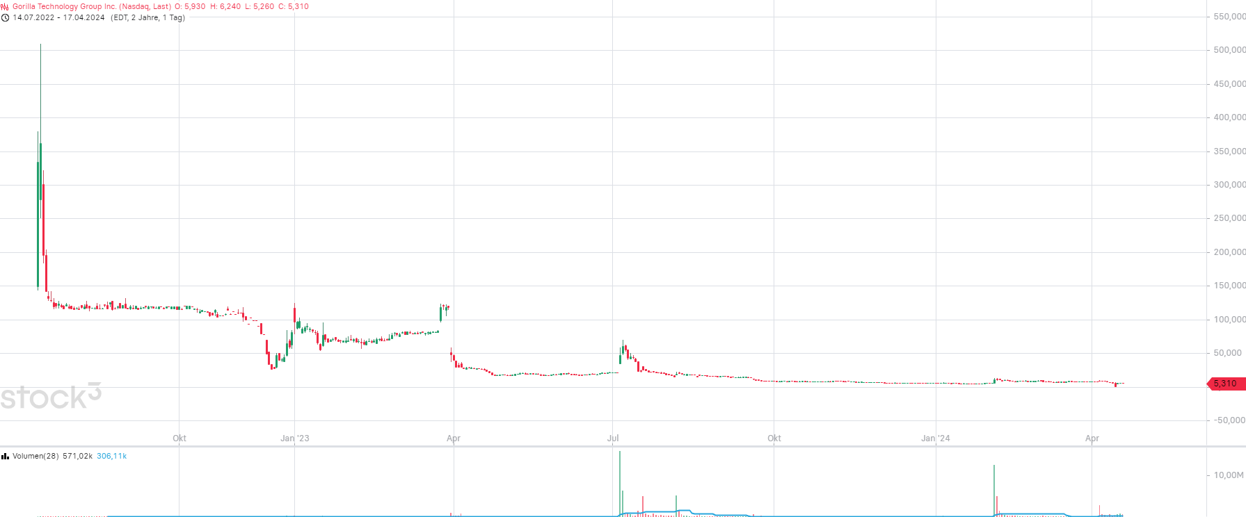Und wer die Aktie vor dem RS von 150:1 gekauft hat, ist trotzdem tief im Minus...