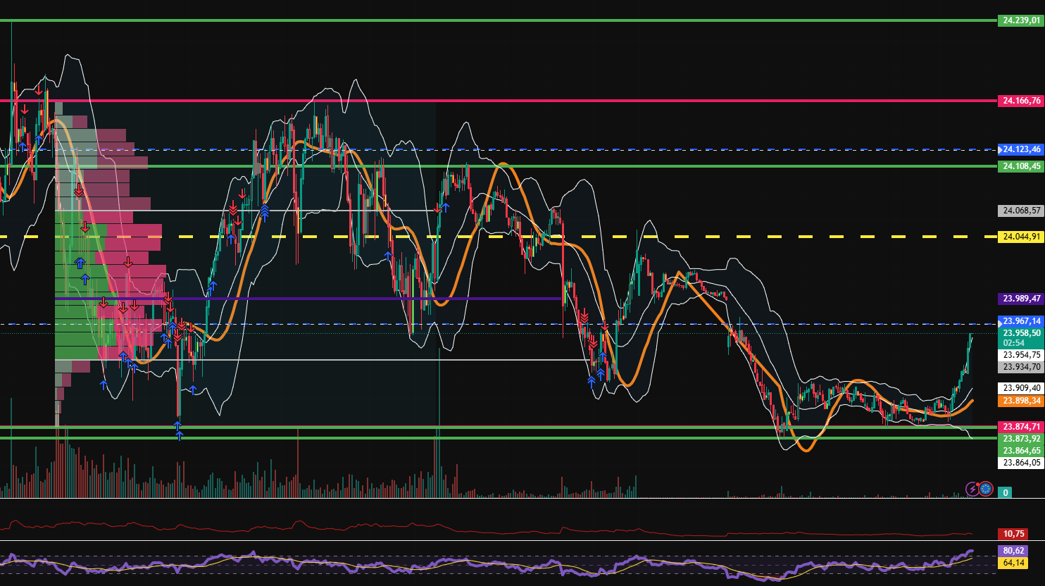 aktuell handeln wir unter der Value aus dem Gleichgewicht. Der Markt will scheinbar in die Value GAP des gestrigen Tages 23984