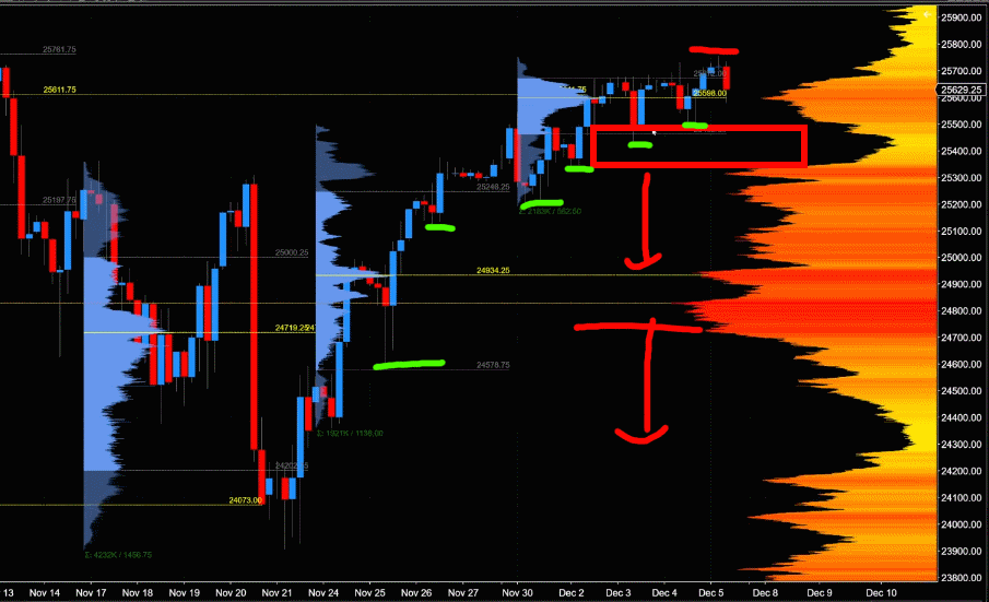 bin übergeordnet weiterhin bearish - wichtig dafür wäre die hochzone heute müsste halten (fischspike erlaubt) und den bereich 25.300 müssten wir nach unten knacken.