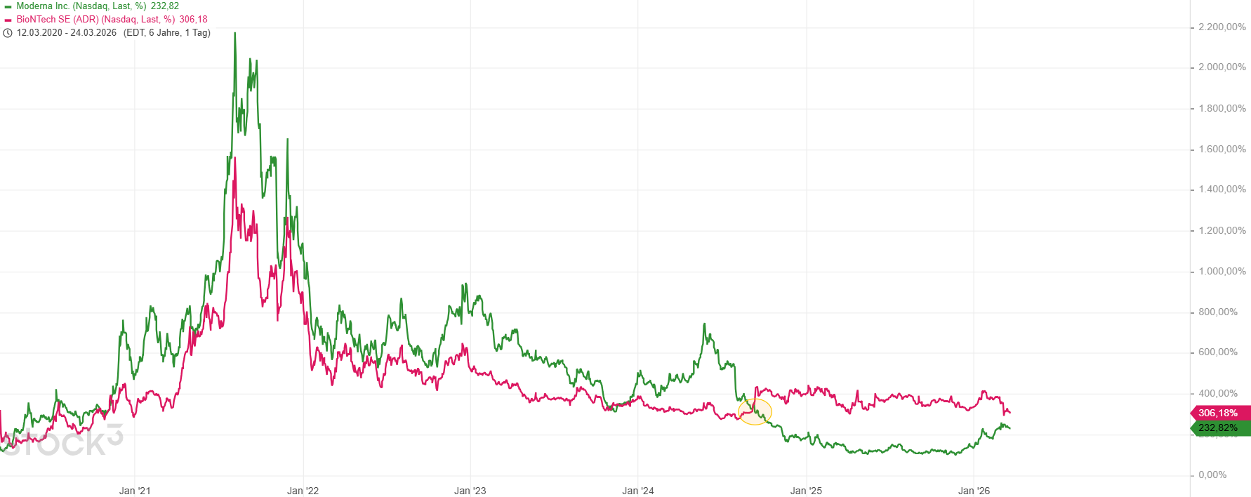 Kann sich hier irgendwer die Divergenz in der Kursentwicklung zwischen BioNtech und Moderna erklären? Biontech ist in allen Belangen das bessere Unternehmen