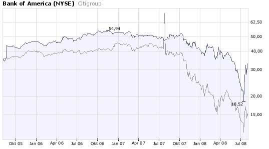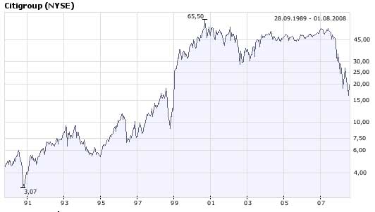 und nu gehts weiter: im moment kämpft man verzweifelt ums weltfinanzsystem. ich denke man wird die frist noch einmal um ein paar jahre verlängern können. ob die citi das überlebt, ... da bin ich mir nicht sicher. zwei jahre wirds bergab gehen. die 2000 im dax werden wir wohl sehen. dann kommt der finale upmove... für ein paar jahre bis das finanzsystem mit allem was dazugehört final zusammenbricht. scheiss nachricht was ... ist aber so !!!