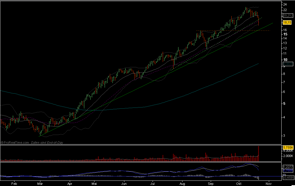 Bis auf wenige Banken, u.a. LBBW (Kursziel erst €4 aktuell €8,50), wurde die Aktie mit teilweise utopischen Annahmen bewertet (Bspw. JPM geht in seinem Bewertungsmodell von €450 Mio Umsatz aus, dabei ist die Unternehmensguidance, vom Vorstand gegeben, gerade einmal bei knapp €300 Mio.) und ständig mit neuen Kurszielen, zuletzt am Freitag von der Deutschen Bank (Kursziel: €26), versehen. Das KGV wäre in dem Fall dreistellig. Und wir wissen alle, wie die Internetblase mit solch utopischen Bewertungen endete.