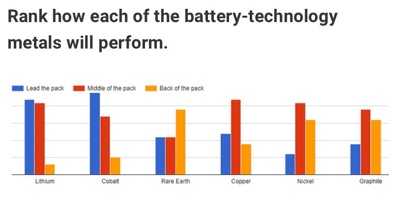 Ordnen Sie die Performance der einzelnen Metalle der Batterietechnologie ein: SEs an dritter Stelle