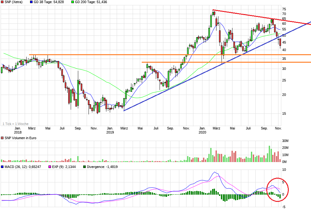 Wert CEO Warburg Research stuft SNP von Buy auf Hold ab und senkt das Kursziel von 65 auf 40 Euro.vor 3 Min