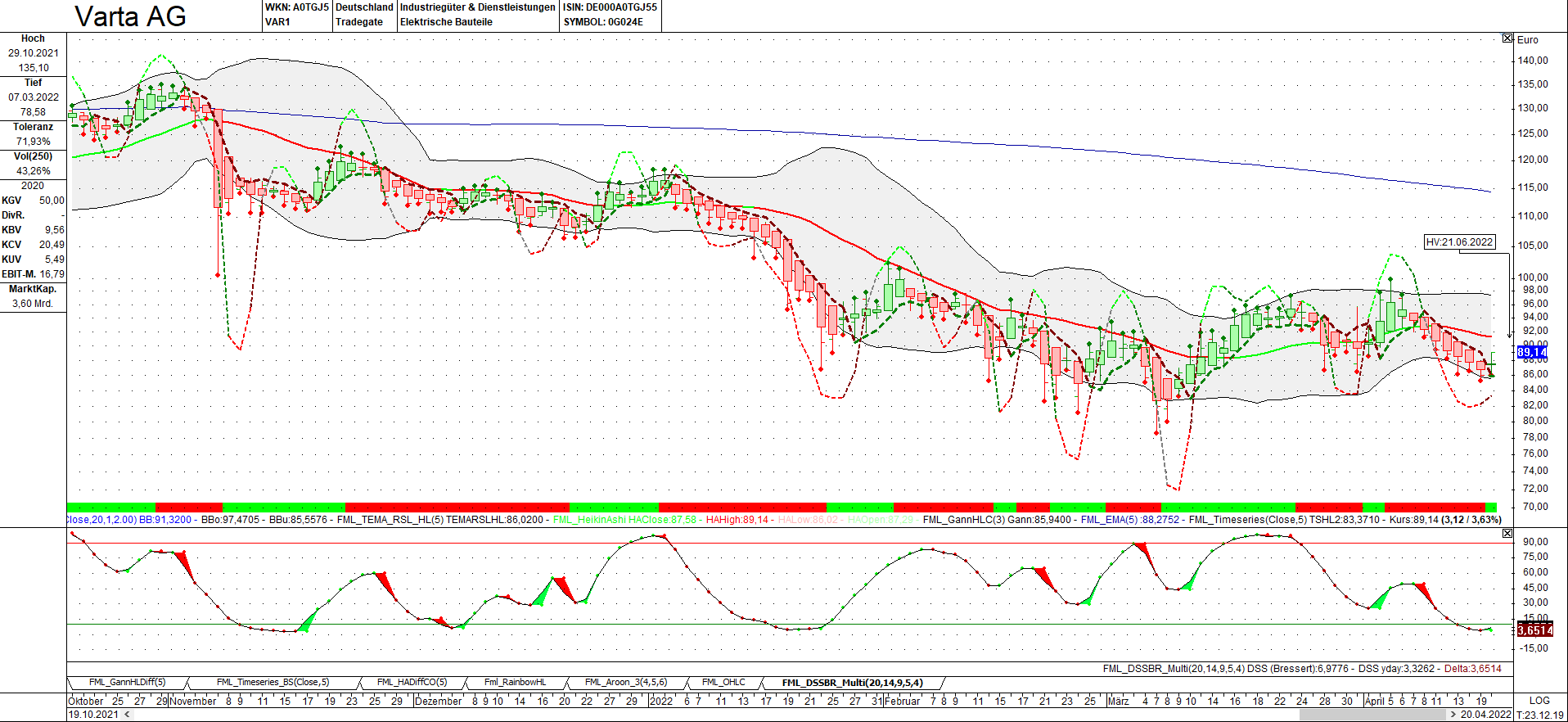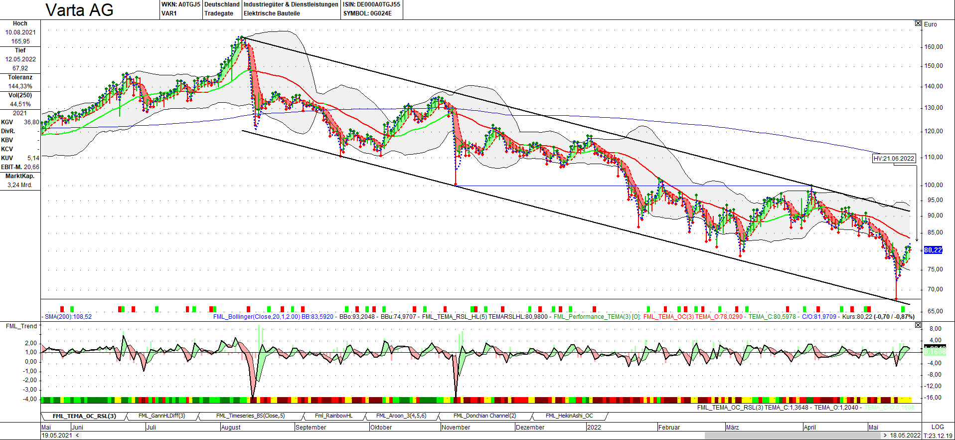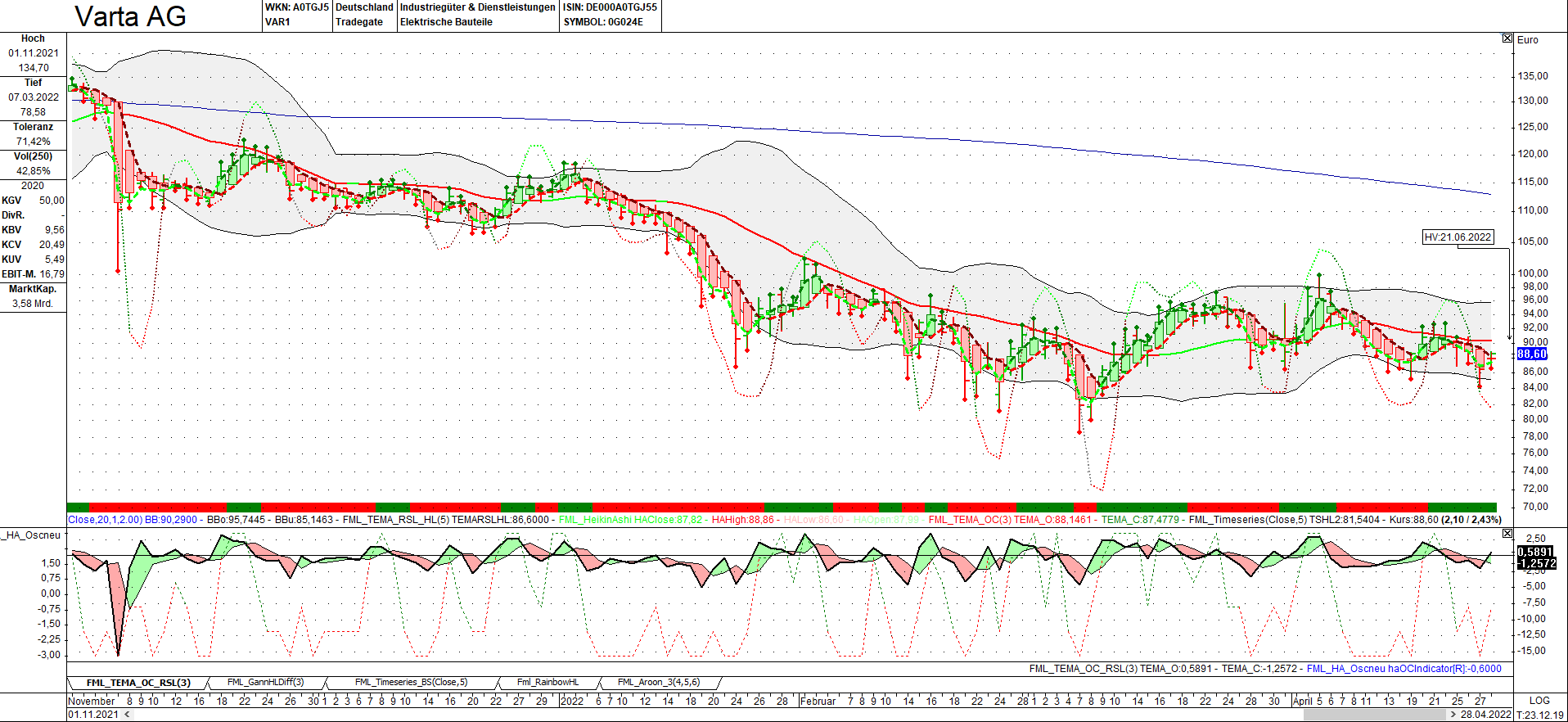 Ich habe Varta auf der erweiterten Watchlist, aber bin im Moment eher verhalten. Mein Chart sieht leider gar nicht gut aus, daher bin ich offen für eine Chartdiskussion.