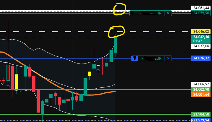 im 30er bremst das mittlere BB RSI im 5 er überkauft mit bis zu 73