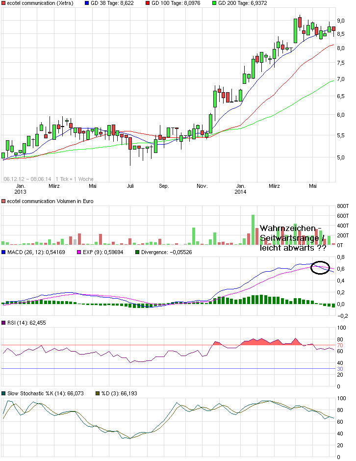 aktuell sieht's nach einer Seitwärtsbewegung zwischen 8,2 und 9,2 € aus.
