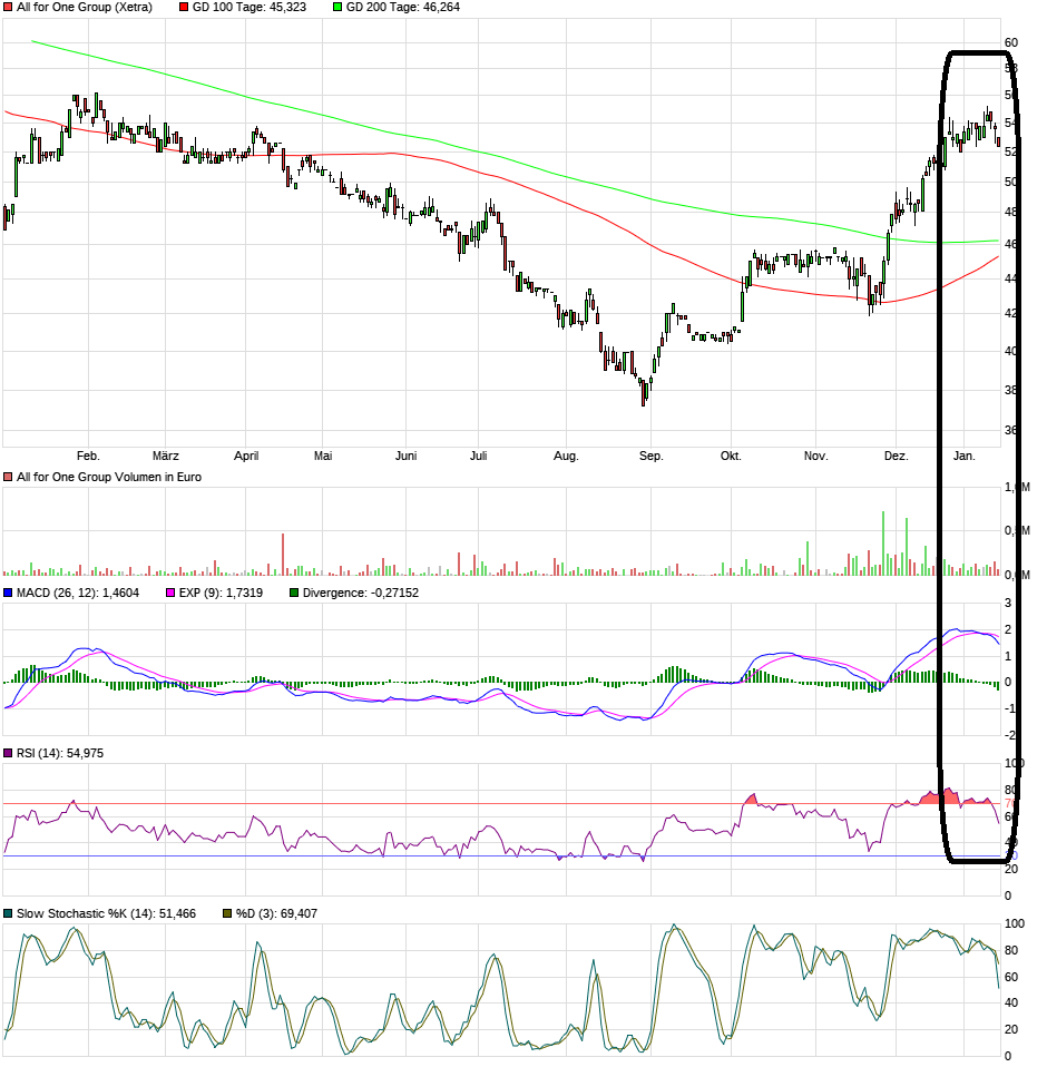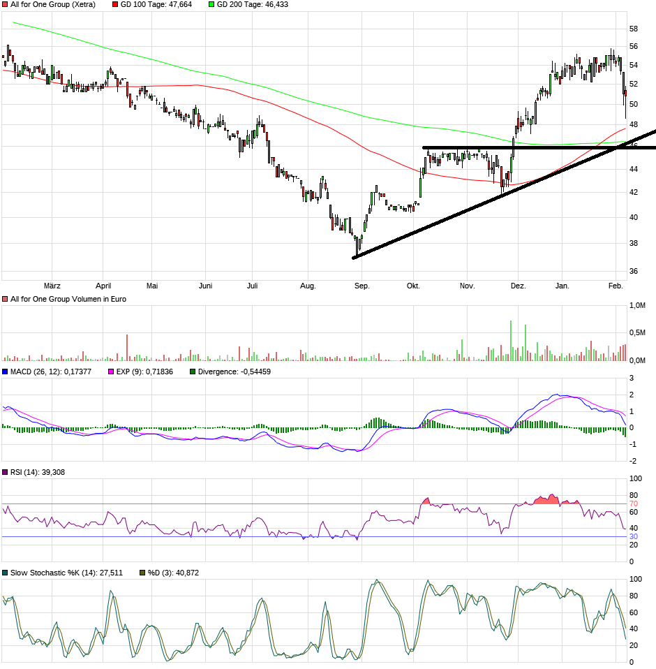 Aber okay, eine kleine Konsolidierng bis 49-50 € hatte ich ja eh schon mal angesprochen. Wäre kein Beinbruch. Kann man die nächsten 2-3 Wochen gerne angehen. Zahlen kommen ja erst am 7.Februar.