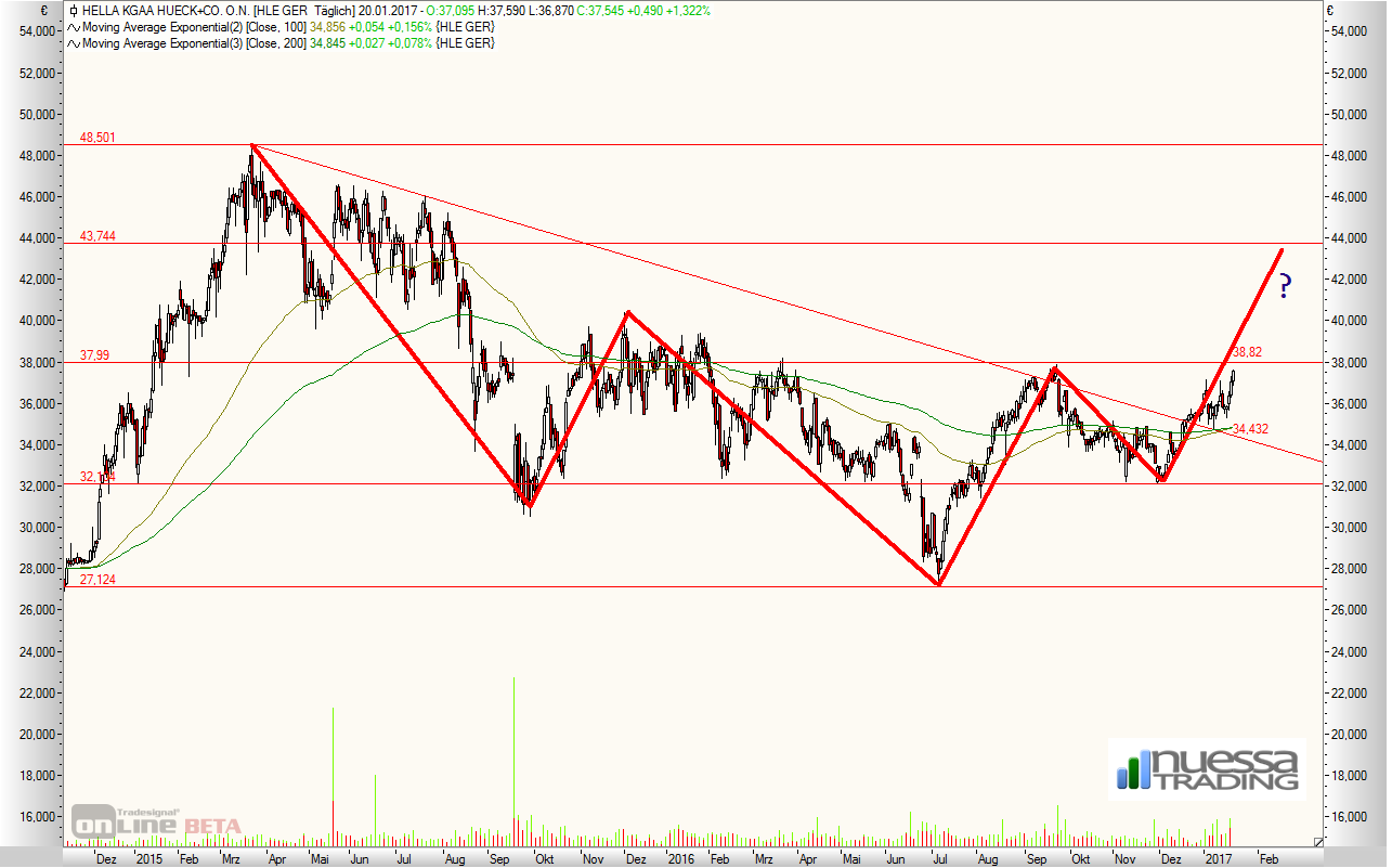sollte die Abwärtstrendlinie positiv getestet werden können, könnte Hella 2017 zu den Outperformern gehören. Fundamental stehn sie ja nachwievor sehr gut da.