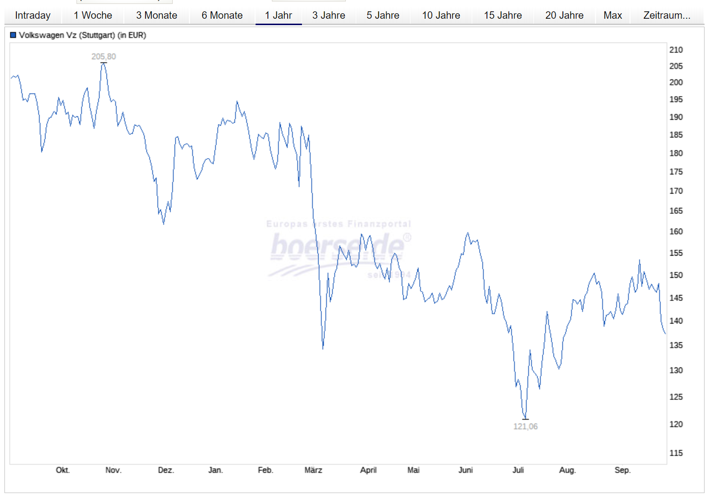 Ich bin kein Trader und habe ein wenig Zeit. Meine Einschätzung liegt - bei Klärung der Probleme in der Welt - weit über dem jetzigen Kurs von 137-140 EUR.