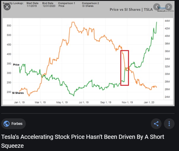 Si shares=Leerverkaufte Aktien. Bei dem Tesla shortsqueeze wurden ca. 10% der ~36mio geshorteten Aktien schleunigst gecovered (Roter Kasten)Der Kurs sprang um ca. 30% nach oben.