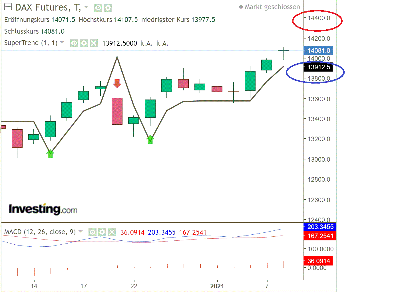 Aus der Vorbörse heraus ist bereits ein Aufschlag zu verzeichnen, der Kurse heute über 14.000 signalisiert.