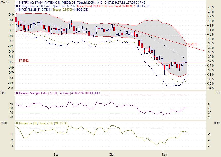 einen Knock Out auf Metro gegönnt bei 37,67 € mit Hoffnung, dass die Aktien den Widerstand um 37,70 € bricht, leider ist das heute nicht gelungen ... Indikatoren sagen zwar kaufen aber wichtig ist, dass es jetzt nicht mehr tiefer geht, nicht das aus den schönen W ein M wird ...