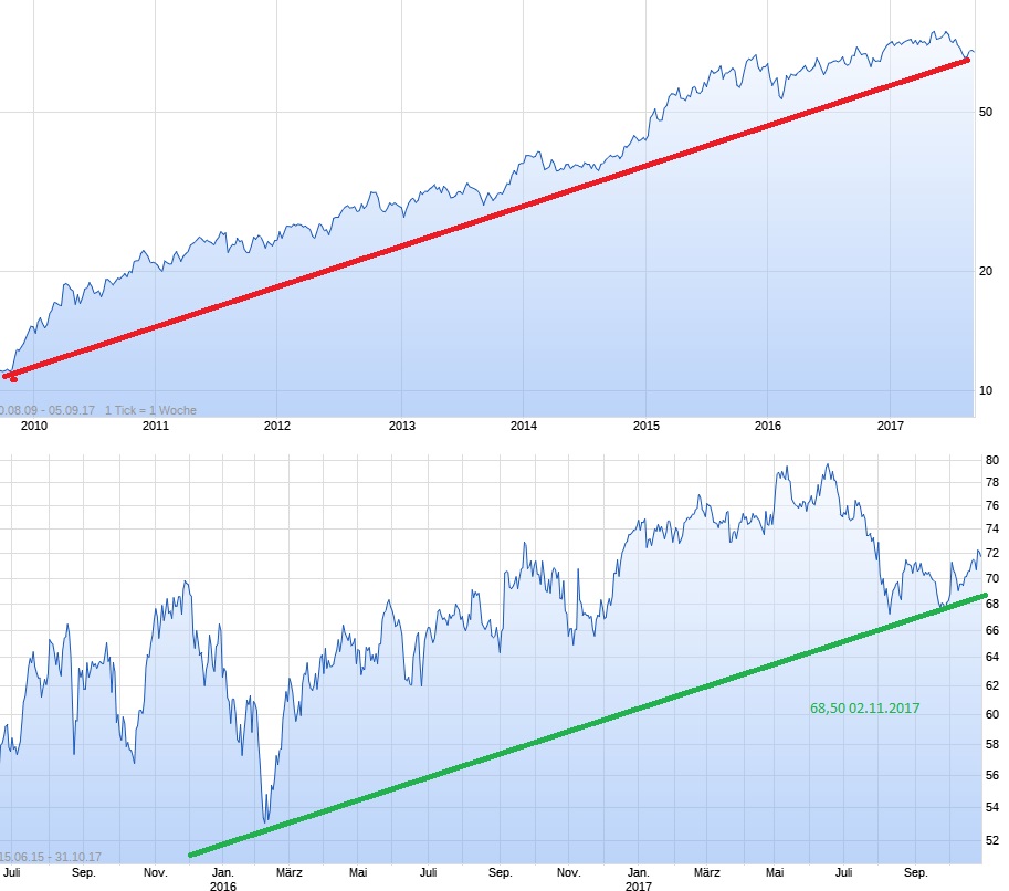 und sind wichtig für weitere Käufe. Ein Rückgang auf 70 oder 69 und einen folgenden Anstig bis 74 wäre eine Möglichkeit.