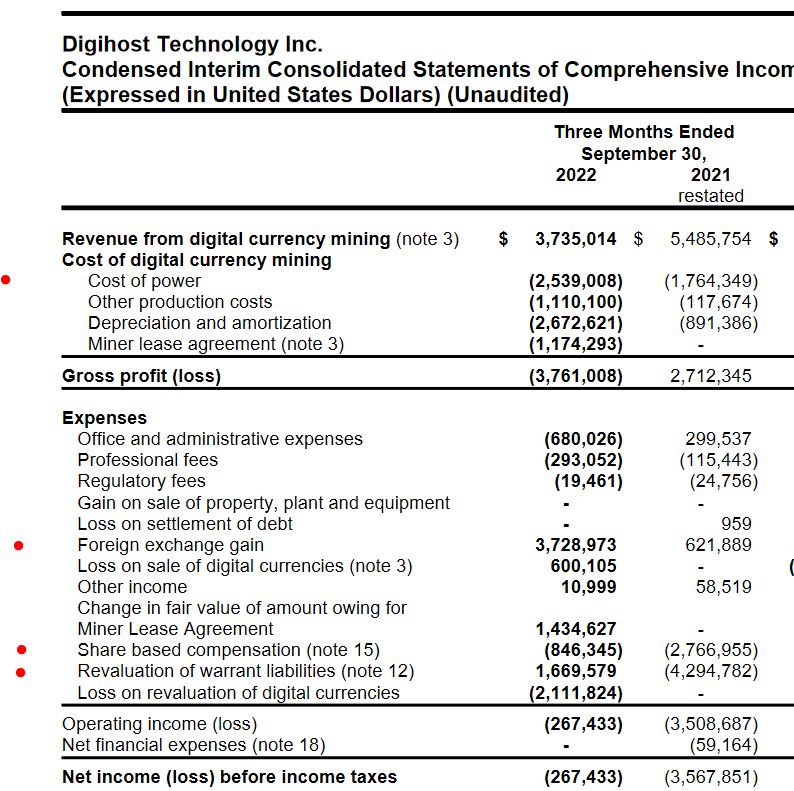 Auch der Ertrag "Revaluation of warrant liabilities und "Miner Lease agreement" ist relativ hoch. Ohne diese Erträge wäre das Ergebnis sehr schwach gewesen.