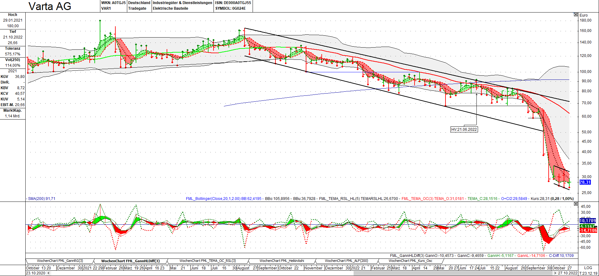 die andauernde Abwärtsbewegung kann man gut mit Vartas sinkendem Cash und Cashäquivalenten begründen, wodurch das Unternehmen nun die Zwinge gerät.