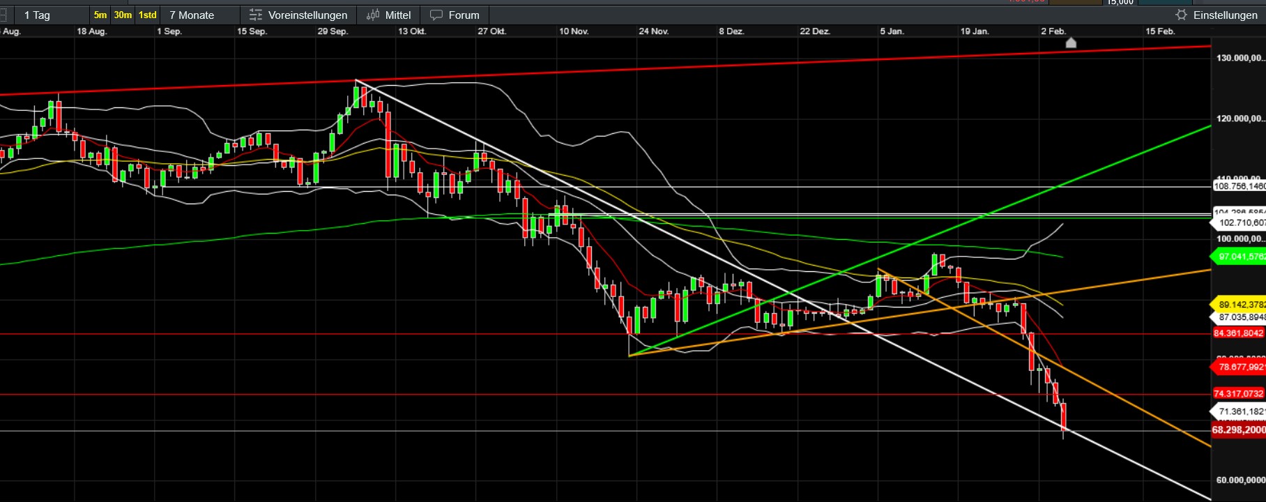 Wie angekündigt kleinen Long gekauft (moderat gehebelt) bei ca. 71600. SL vorerst unter Tagestief.