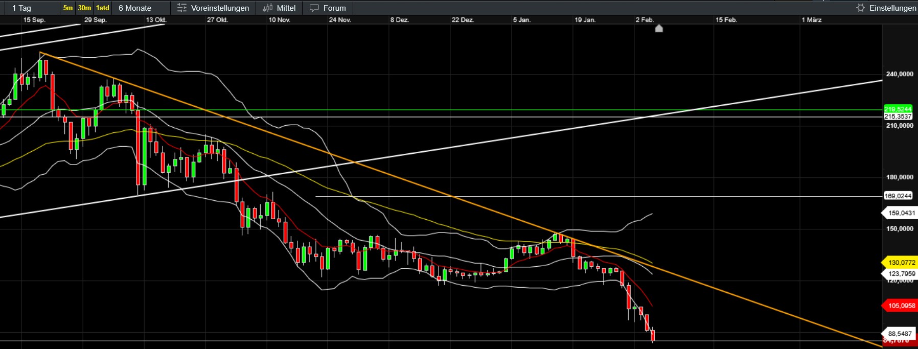 Mehr fällt mir nicht mehr dazu ein. Depot heute 13,4 Prozent im Minus. Solana im allfälligen Unterstützungsbereich bei knapp über 80 - Irre… wollte eben nochmal nachkaufen aber zu spät. Macht nichts vielleicht besser so, mal sehen wo wir morgen stehen..