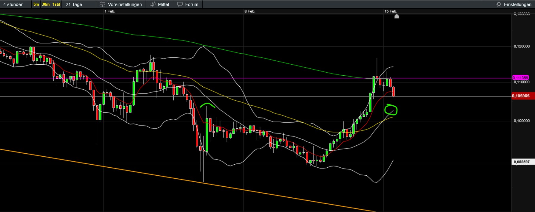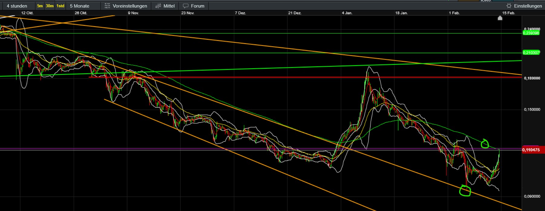 abgeprallt sind sie - in trends nicht schlimm eher normal - ema wie immer der trigger - drunter in einem keilähnlichem gebilde platz im flachem uptrend (flag?)