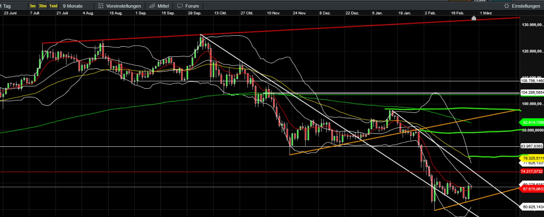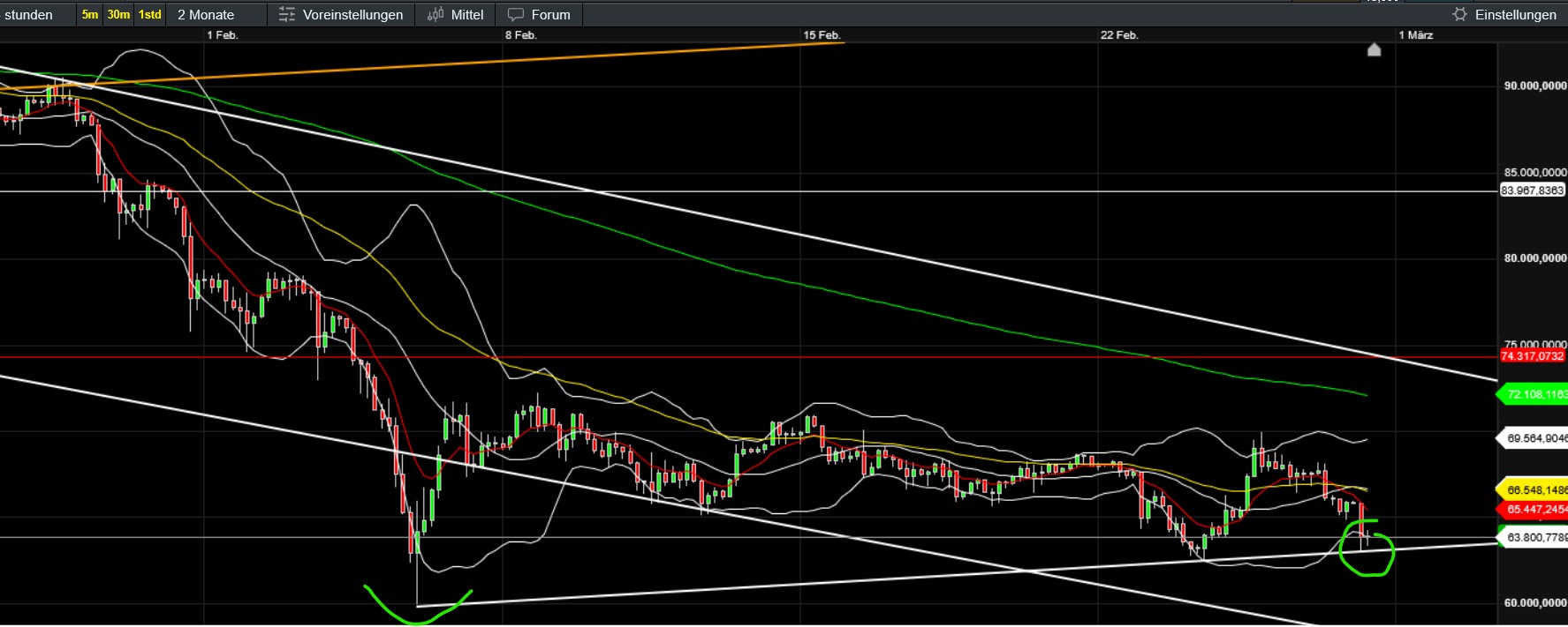 jetzt haben wir endgültig unsere marken - die annahme war ja 65/62 muss halten - druck ist vorerst raus - ABER btc weiter angeschlagen - s auch oester die letzten wochen