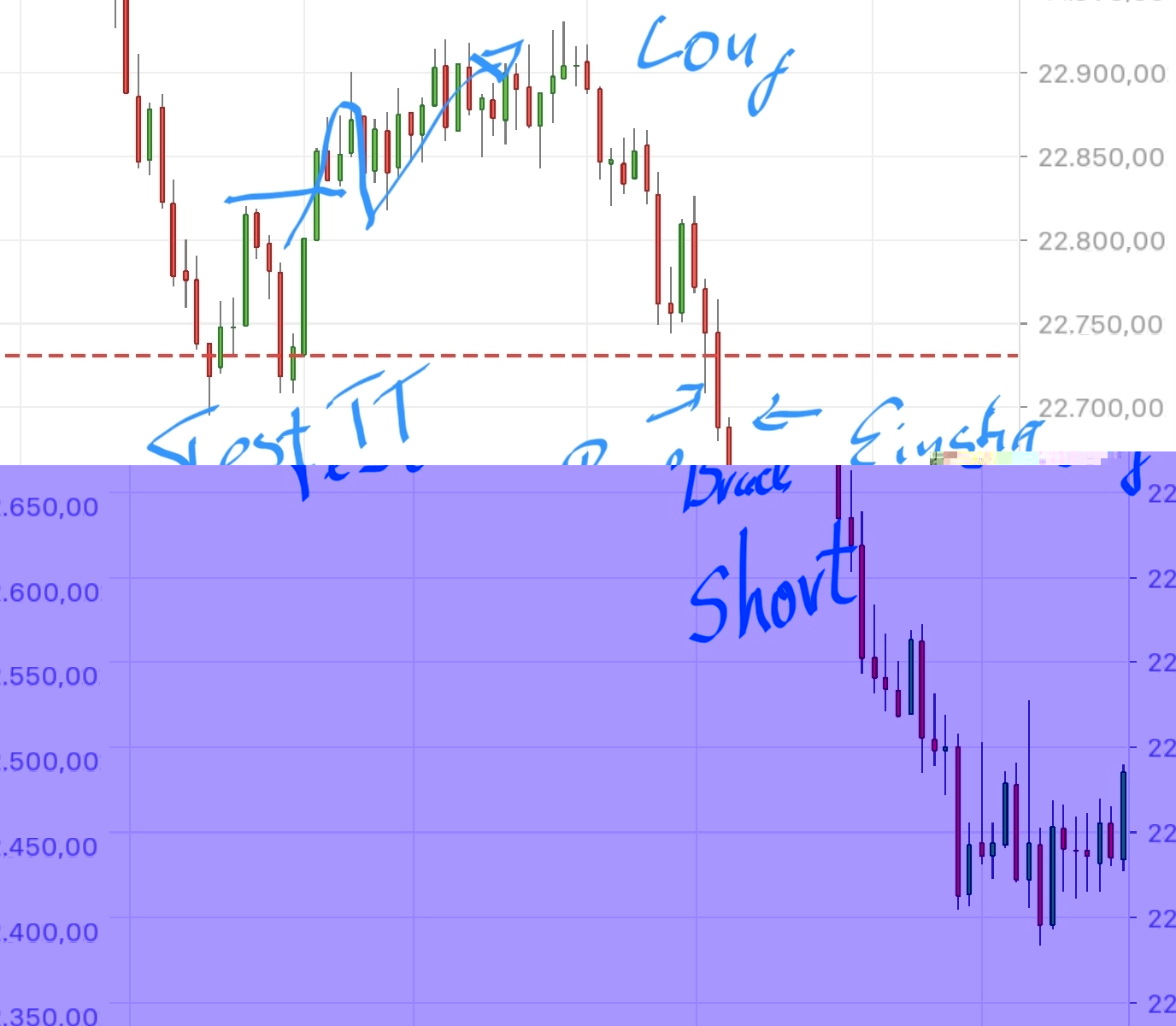 Will der Dax nach unten, dann geht er nach unten. Will er wieder nach oben, dann geht er wieder nach oben. Alles andere kann heutzutage, wo man in dem Fall als menschlicher Trader antritt gegen milliardenteure Trading-Algorithmen und Hochfrequenzhandel, nur nach hinten losgehen. Langfristig Geld damit verdienen tut nur ein Prozent aller Trader, und es ist nicht sehr schlau zu denken, dass man selbstverständlich zu diesem einen Prozent gehören wird.