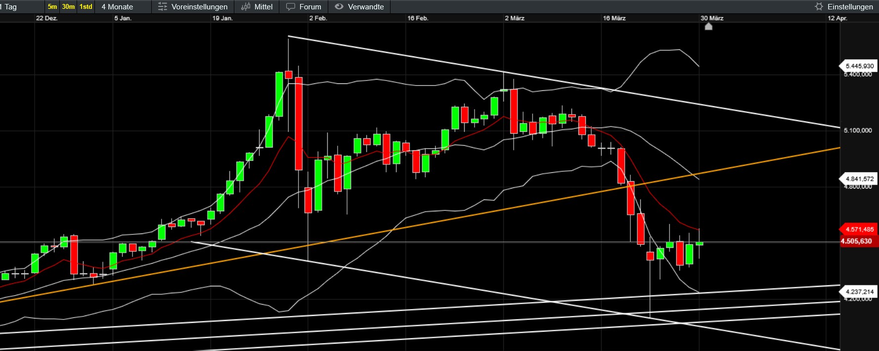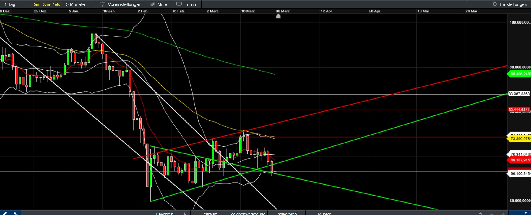 Dieses Szenario setzt voraus, dass es keine massive weitere geopolitis­che Eskalation­ gibt, aber auch keine klare Entspannun­g. In diesem Fall ist mit einer volatilen Seitwärtsb­ewegung zu rechnen.