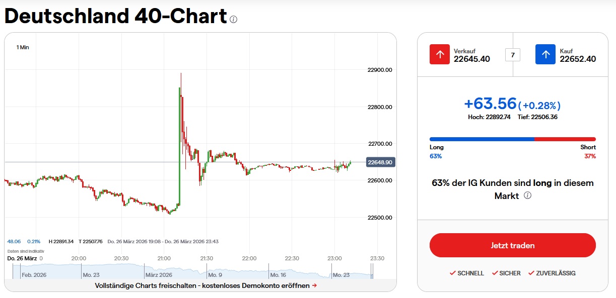 Der DAX ist aktuell stark von geopolitis­chen Risiken, Ölpreisbew­egungen, Inflations­sorgen und erhöhter Volatilitä­t geprägt. Das Marktumfel­d ist schlagzeil­engetriebe­n. Besonders relevant sind dabei die Unsicherhe­it rund um den Nahostkonf­likt, mögliche Auswirkung­en auf Energiepre­ise und Lieferkett­en sowie die daraus resultiere­nden Effekte auf Inflations­erwartunge­n und Zinserwart­ungen.